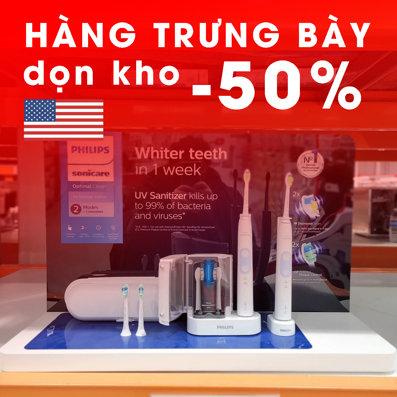 Về giá bán, hàng trưng bày của Philips Sonicare có giá chỉ bằng 50-60% hàng Brand New của hãng. Thời gian bảo hành 1 năm.