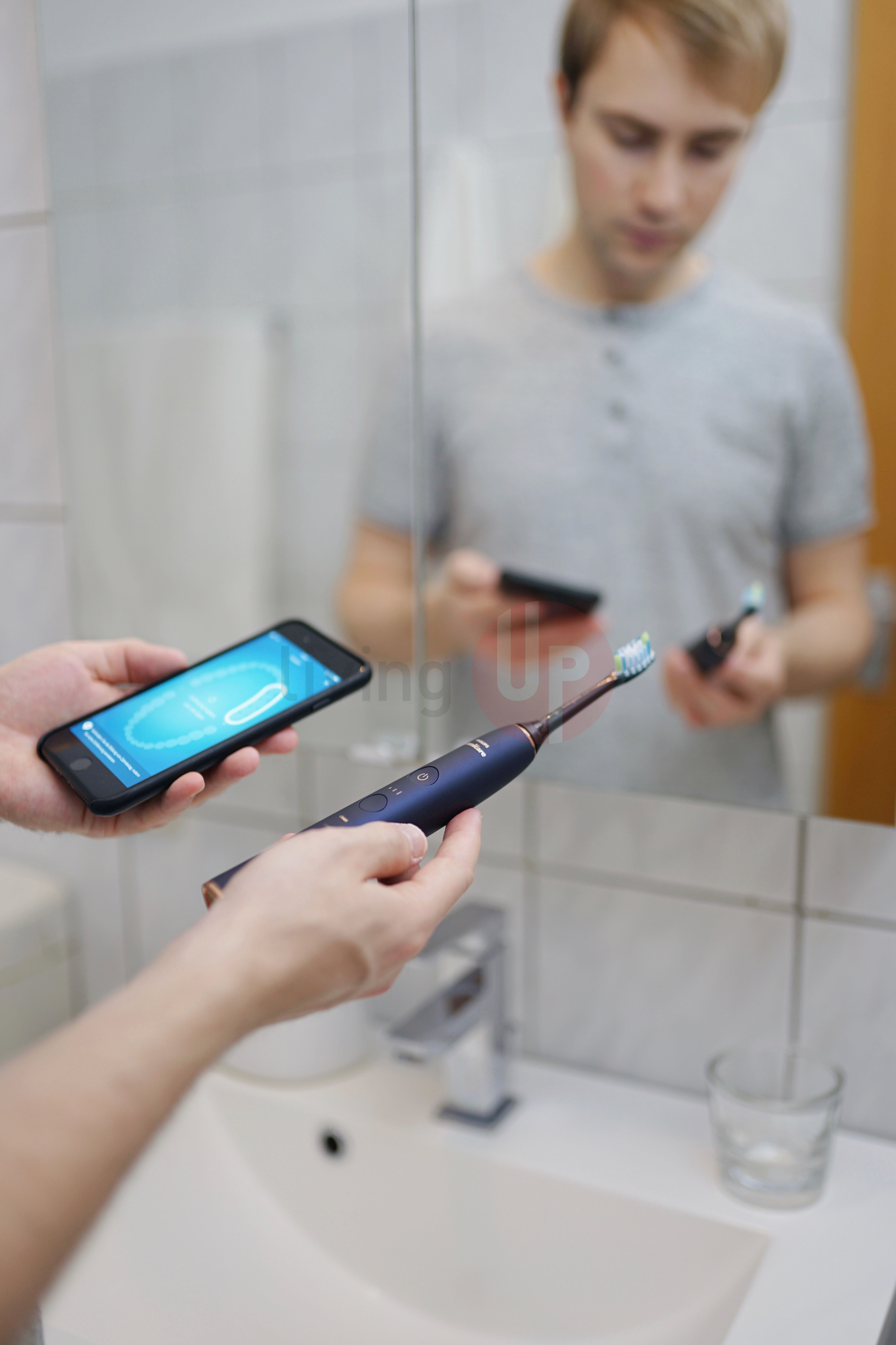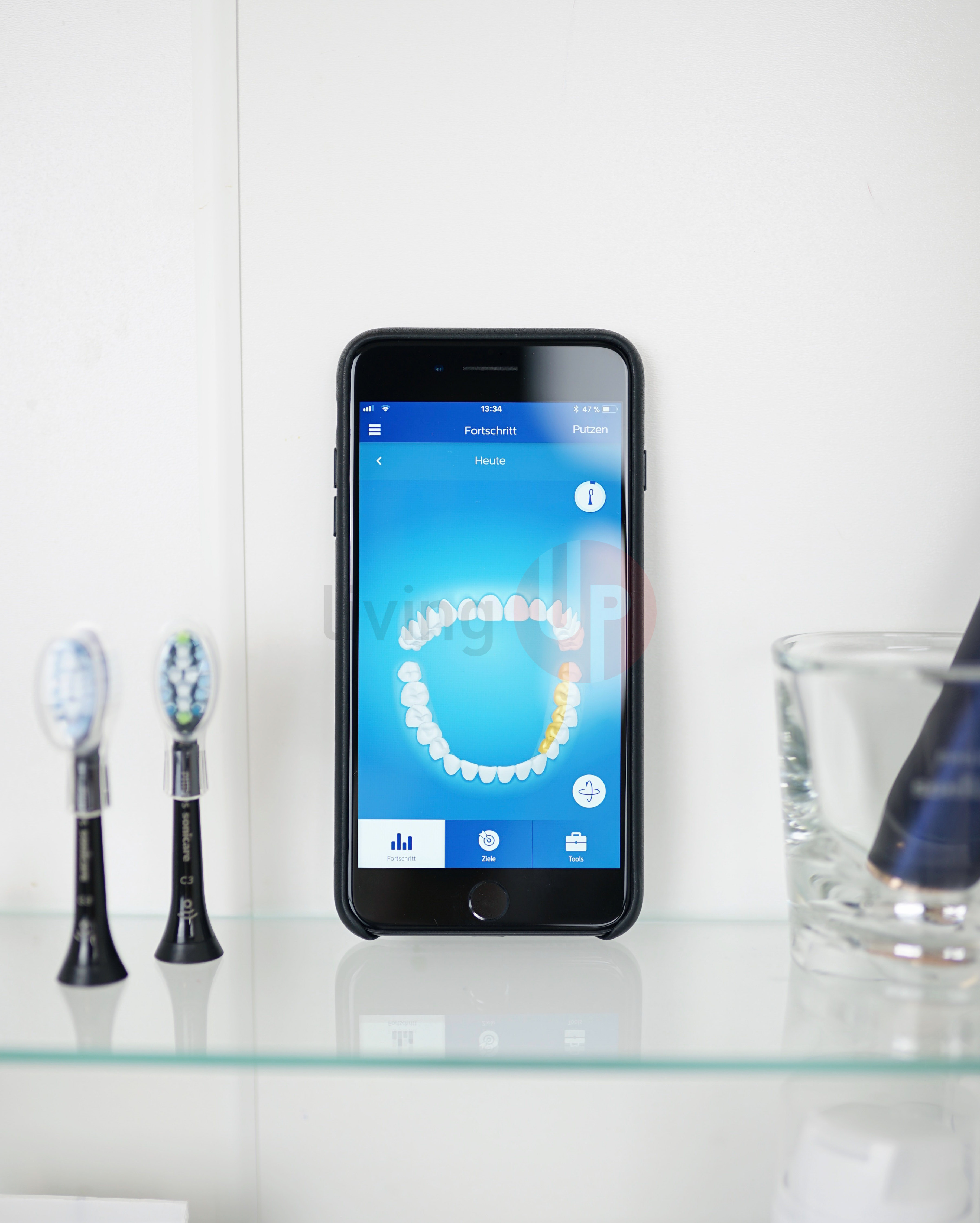 Mặc dù bạn có thể sử dụng bàn chải đánh răng Philips Sonicare 9700 này hoàn toàn mà không cần ứng dụng, nhưng nó được thiết kế để sử dụng cùng ứng dụng. Bàn chải đánh răng kết nối với iPhone của bạn bằng bluetooth và bạn có thể xem cách bạn đang đánh răng và tiến bộ trong thời gian thực bằng ứng dụng.