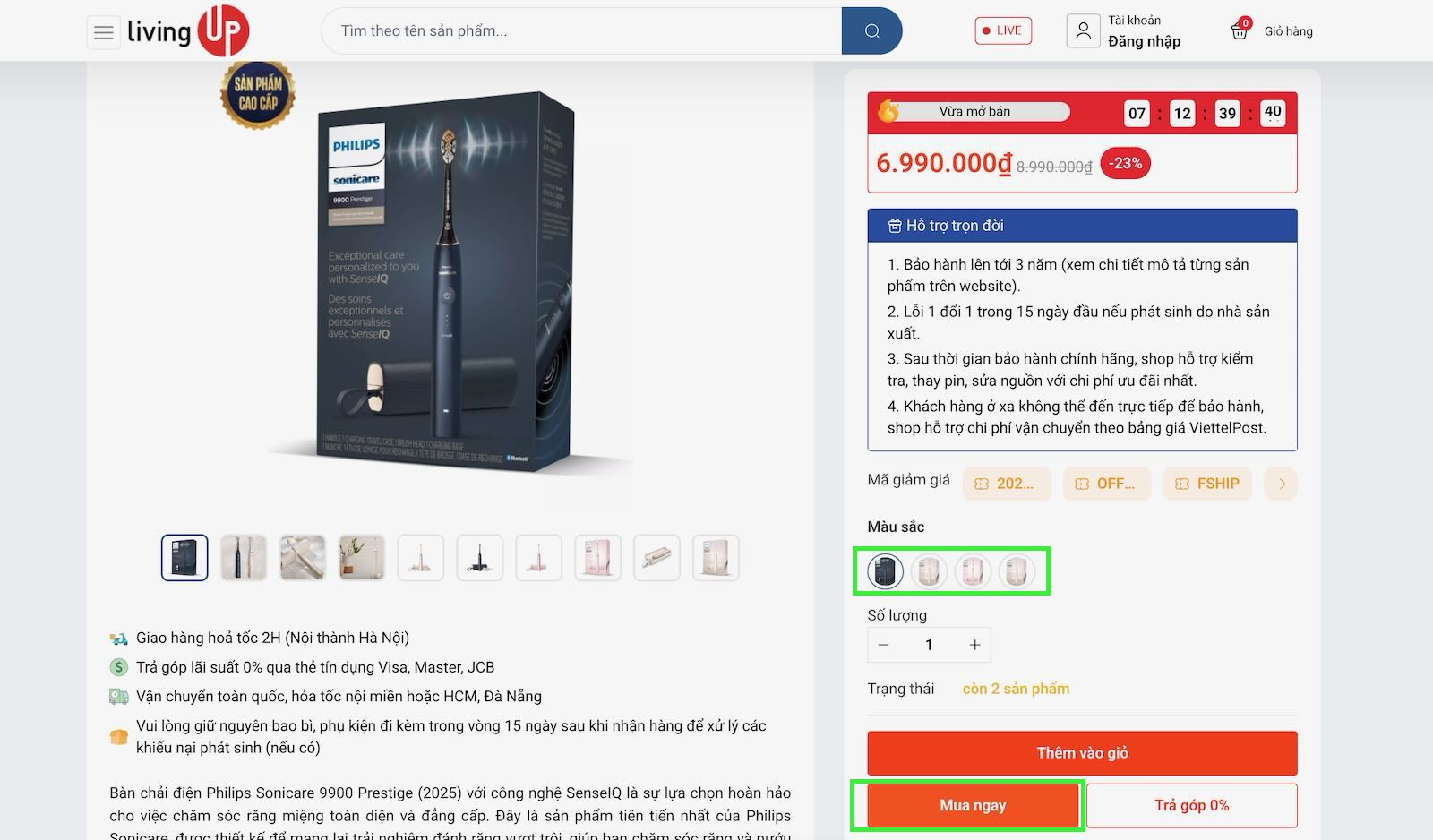 - Đơn hàng có giá trị thanh toán cuối cùng (sau khuyến mãi) lớn hơn hoặc bằng 3 triệu đồng.