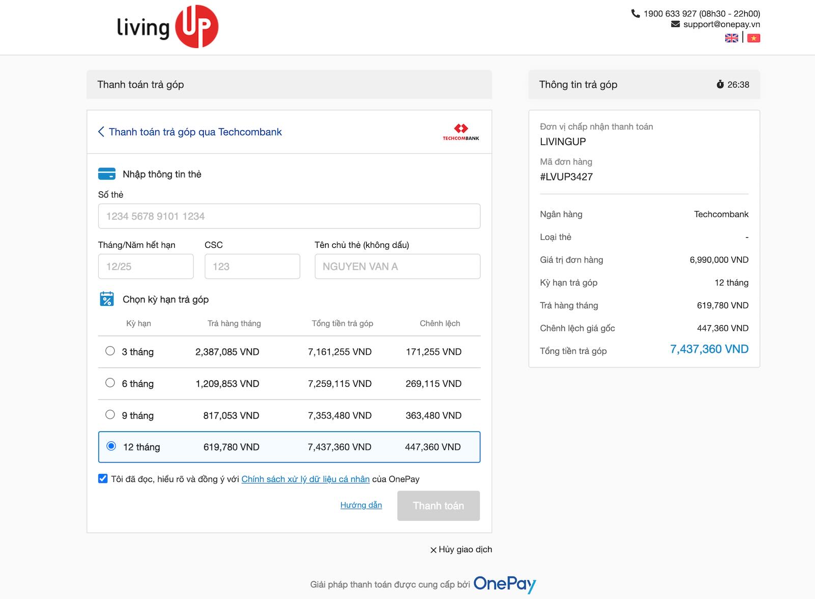 Hướng dẫn thanh toán trả góp online