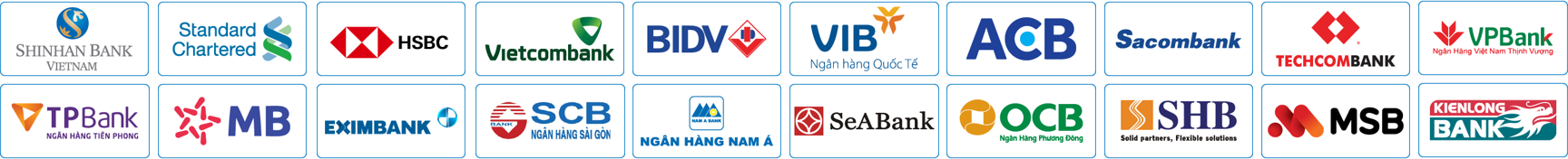Hỗ trợ trả góp qua thẻ tín dụng VISA-MASTERCARD các ngân hàng liệt kê phía dưới.