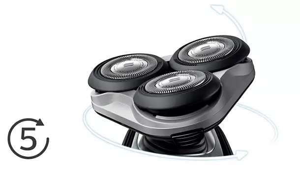 Đầu cạo linh hoạt theo 5 hướng để cạo nhanh và sát