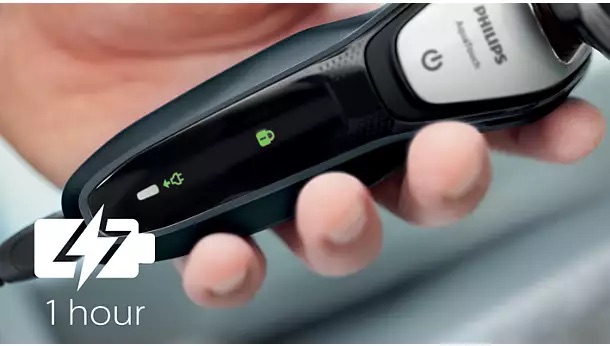 Cạo lâu hơn với mỗi lần sạc, nhờ có pin công suất cao, bền lâu và tiết kiệm năng lượng của chúng tôi. Sạc nhanh trong 5 phút và bạn sẽ có đủ điện cho một lần cạo râu.