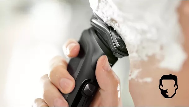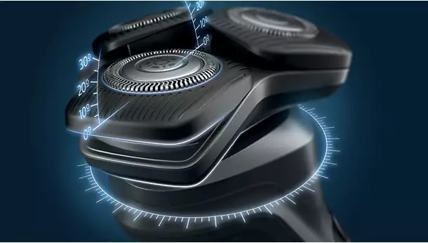 Đầu hoàn toàn linh hoạt quay 360° theo đường nét trên khuôn mặt của bạn. Trải nghiệm sự tiếp xúc tối ưu với da để cạo râu kỹ lưỡng và thoải mái.