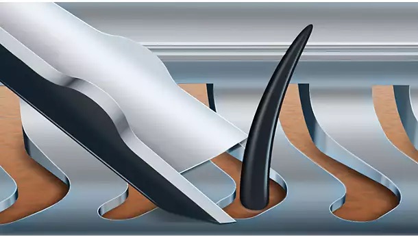 - Lưỡi cạo hướng dẫn hoàn hảo các sợi lông vào vị trí để cạo sát