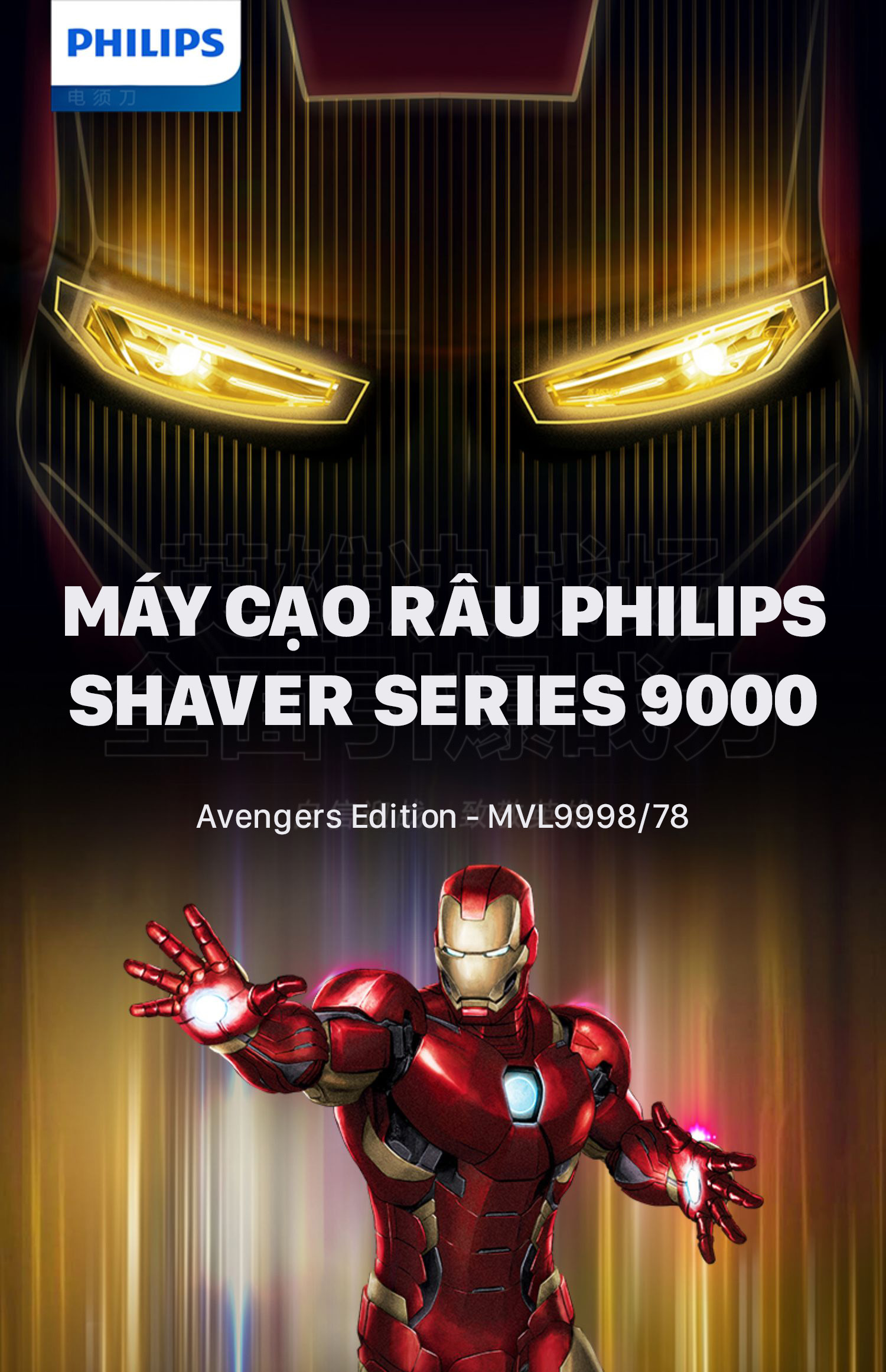 Philips Shaver Series 9000 MVL9998/78 - Avenger Edition/Iron Man là một phiên bản giới hạn của dòng sản phẩm Philips Shaver Series 9000. Đây là một máy cạo râu điện tử được thiết kế với độ chính xác cao, giúp đảm bảo một kết quả cạo râu hoàn hảo và mượt mà.
