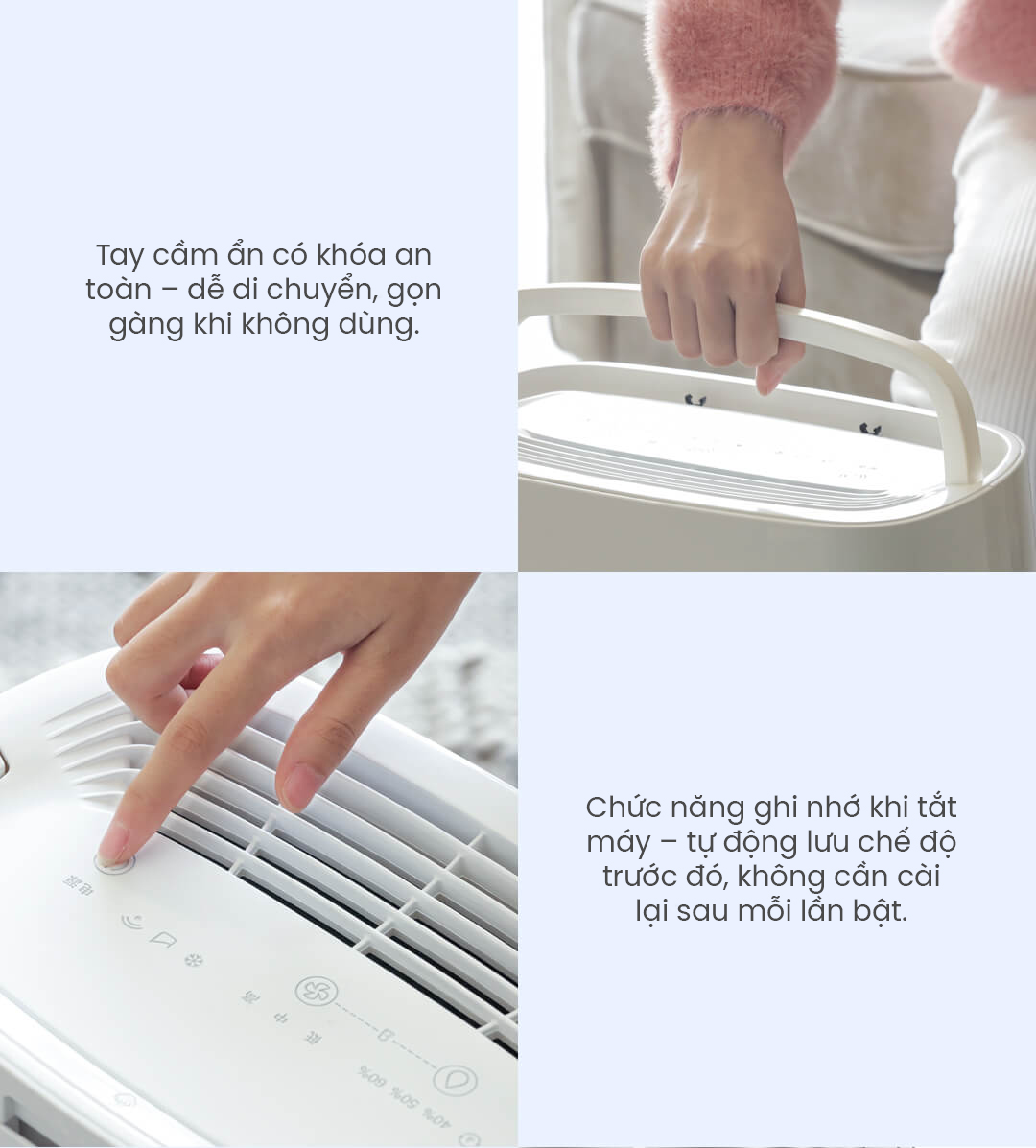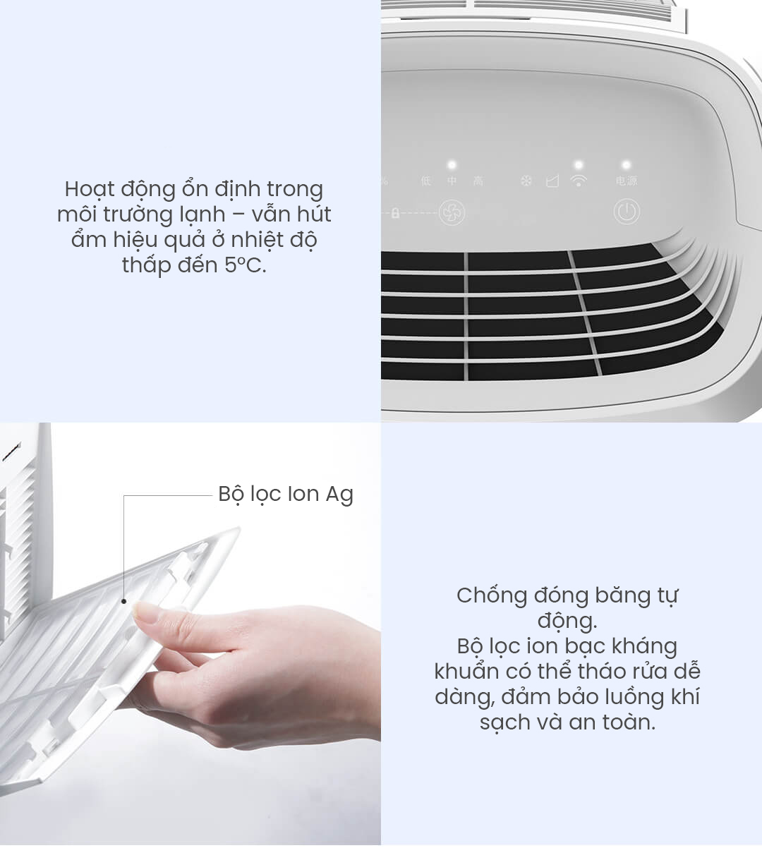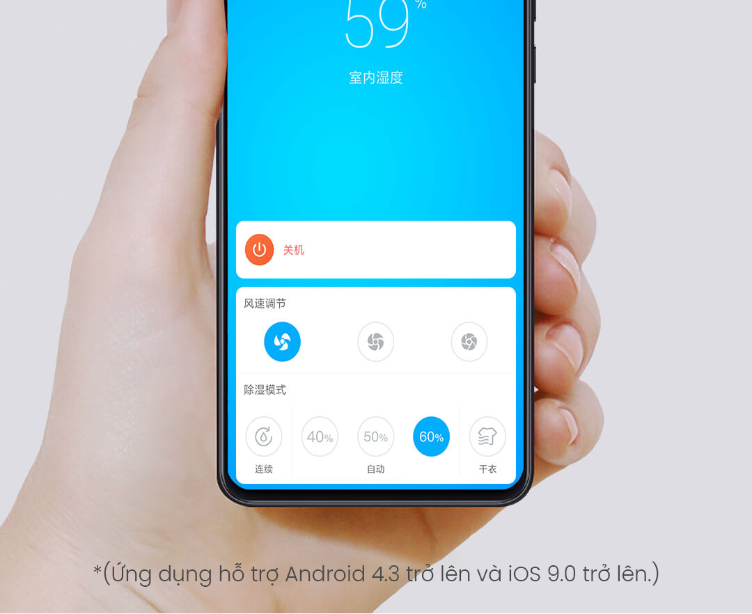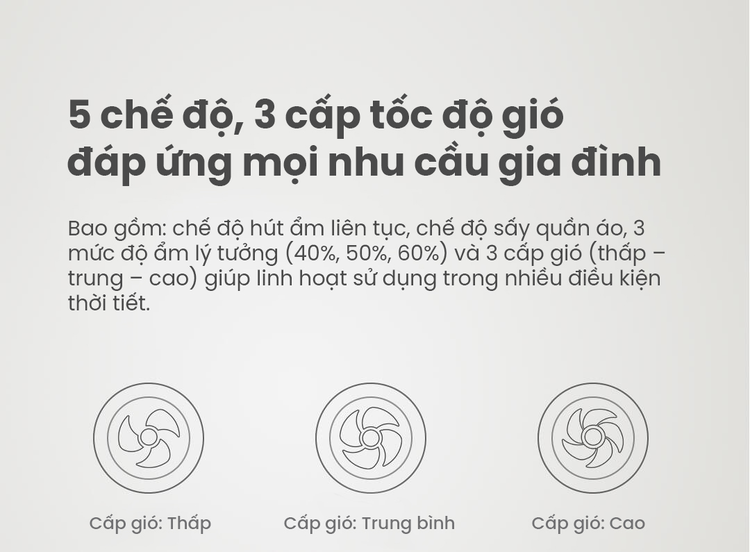 | Phạm vi điều chỉnh độ ẩm | RH40%, RH50%, RH60% (±5%) |