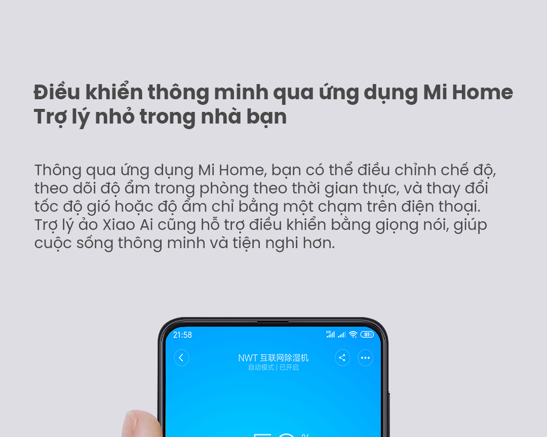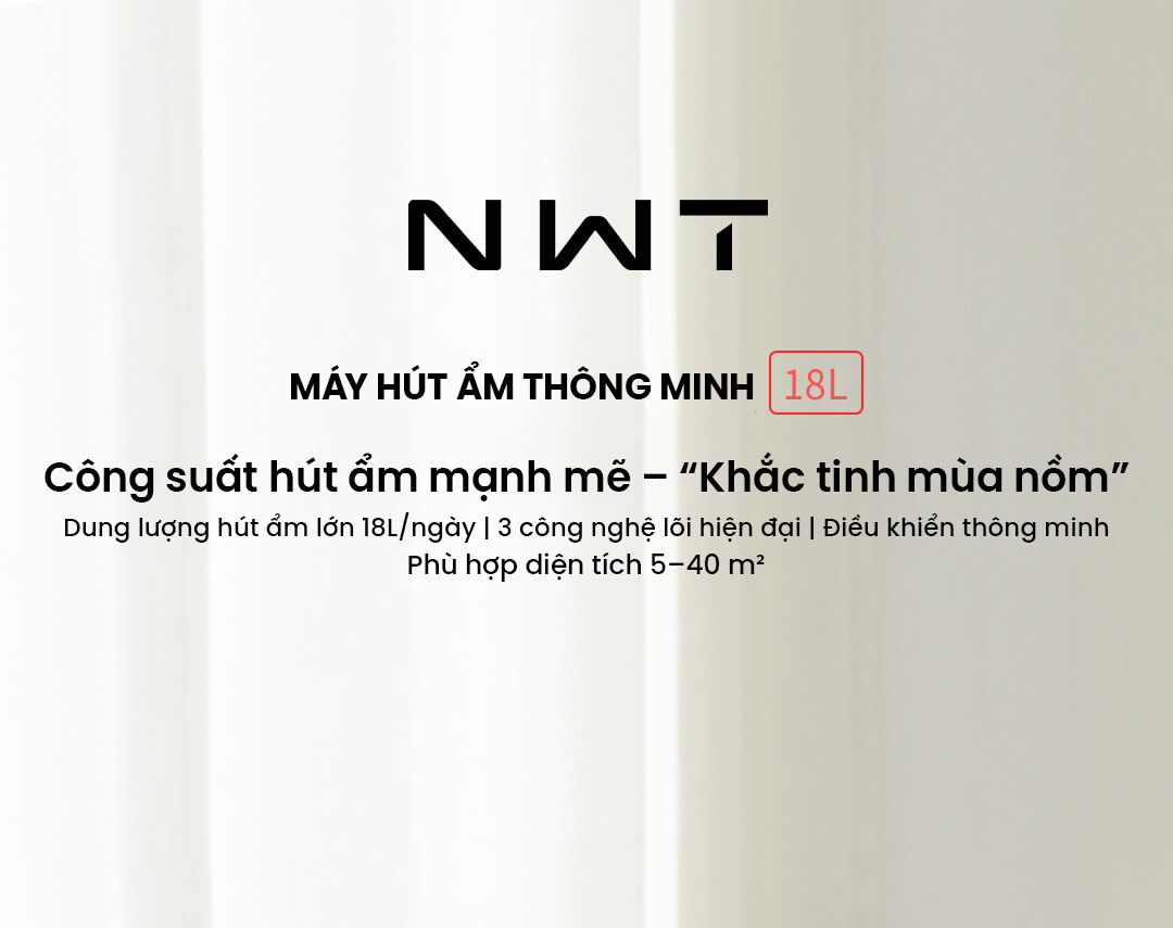 Máy hút ẩm thông minh NWT 18L (WDH318EFW1) mang đến khả năng hút ẩm mạnh mẽ 18L/ngày, vận hành êm ái chỉ 38dB, tích hợp điều khiển thông minh qua Mi Home App. Thiết kế tinh tế, tiết kiệm điện 240W, phù hợp cho không gian 5–40m², giúp không khí luôn khô thoáng, dễ chịu và sạch khuẩn nhờ bộ lọc ion bạc kháng khuẩn.