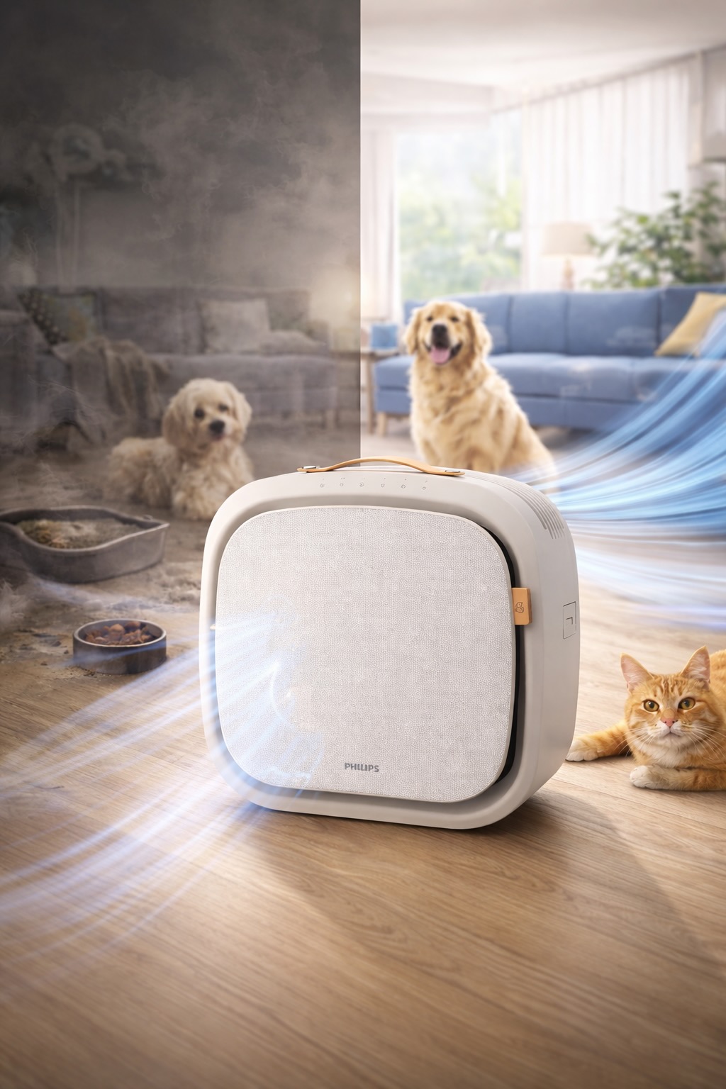 Máy lọc không khí khử mùi và lông vật nuôi Philips hút sạch lông thú cưng hiệu quả và khử mùi hôi thường gặp. Hoạt động êm ái và thiết kế thân thiện với thú cưng mang đến một ngôi nhà sạch sẽ, yên tĩnh hơn cho bạn.
