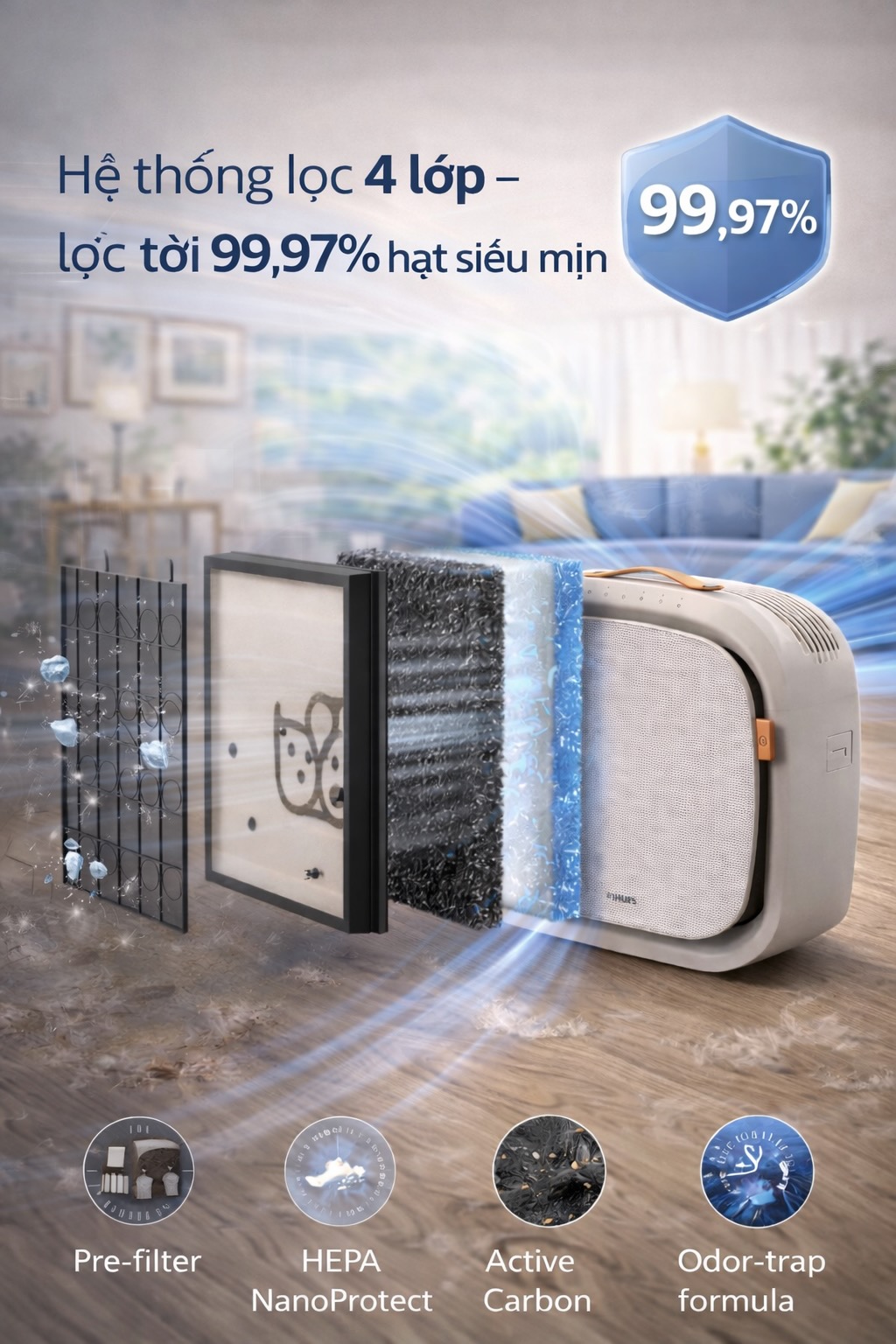 Máy lọc không khí dành cho nhà có nuôi thú cưng Philips PureProtect Pet Series 3000