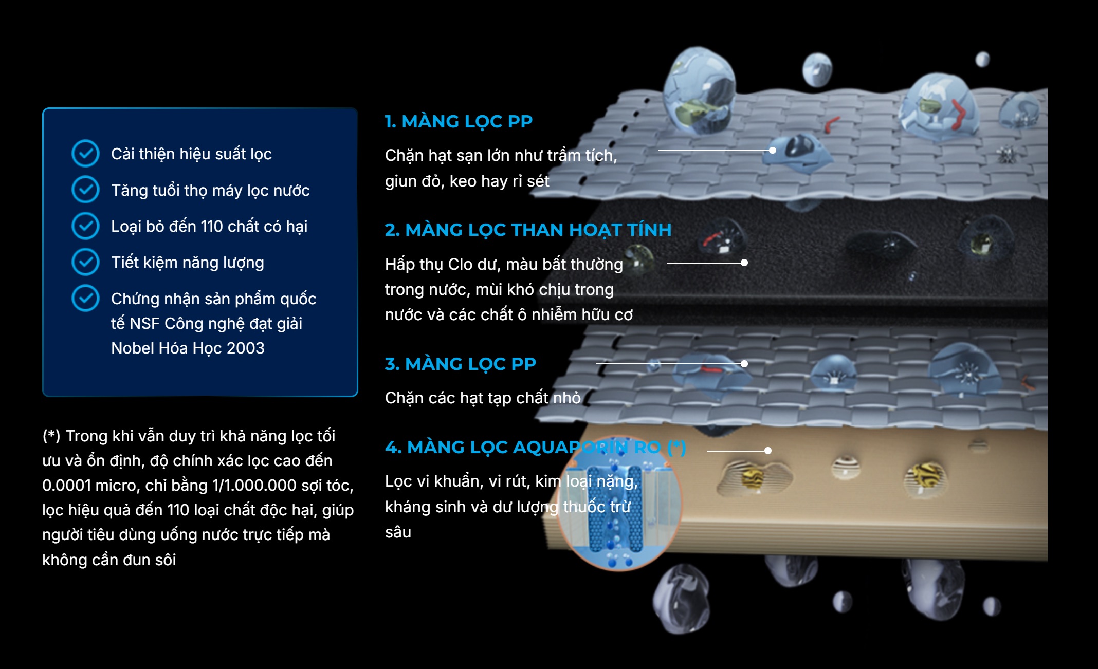 | Công nghệ lọc | Thẩm thấu ngược RO |