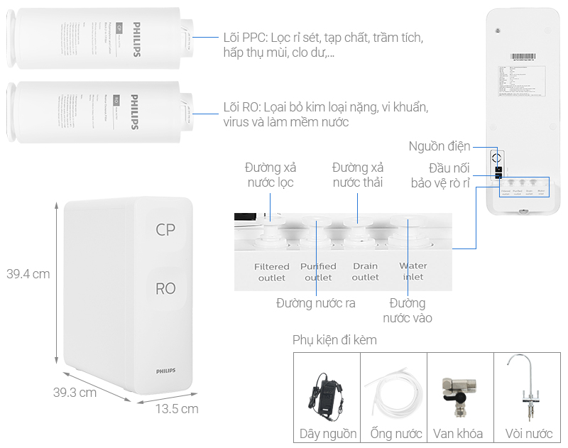 | Công nghệ lọc | Thẩm thấu ngược RO |