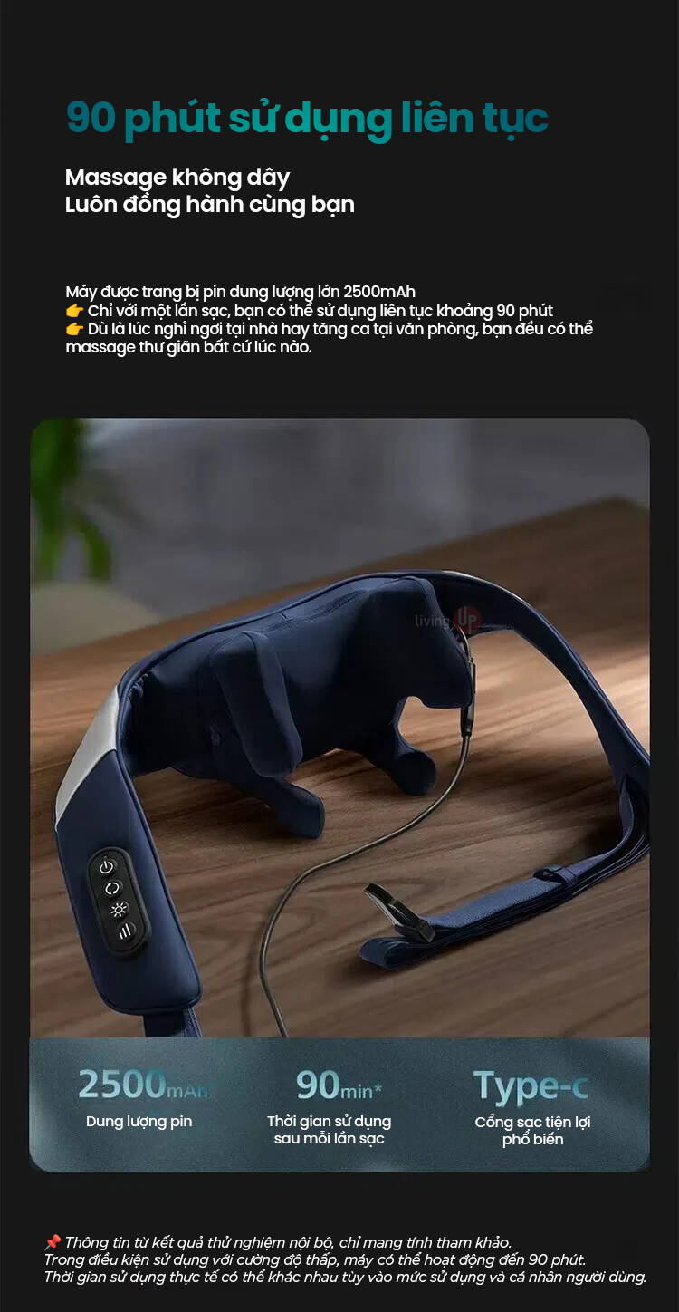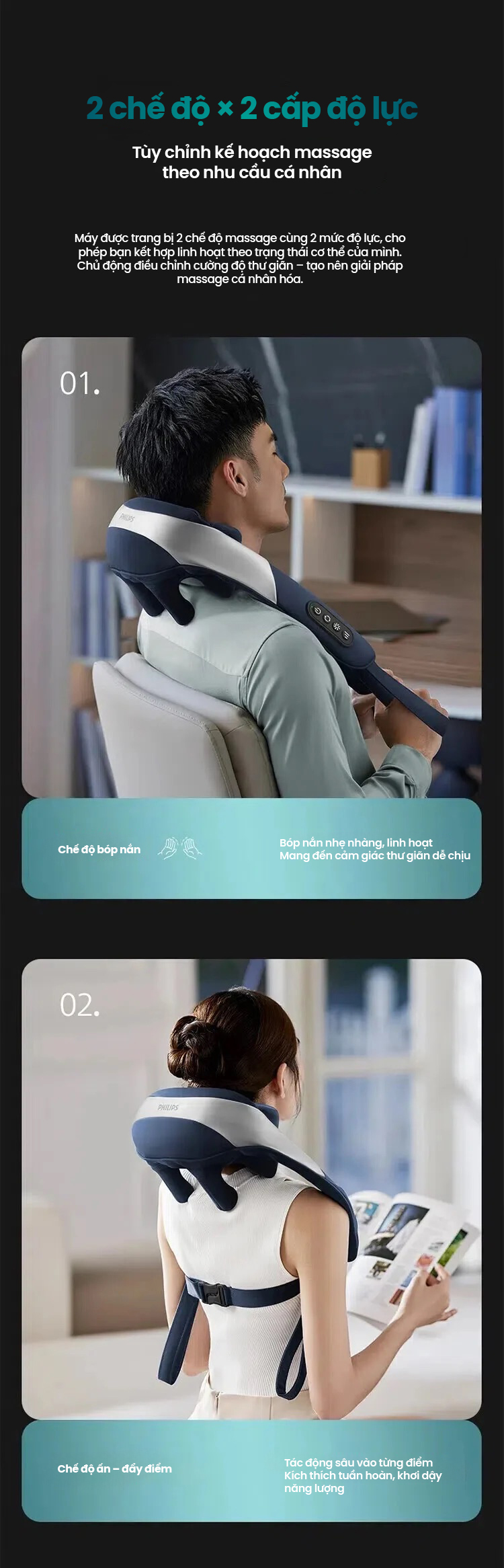 | Chế độ | 2 chế độ massage × 2 mức lực |