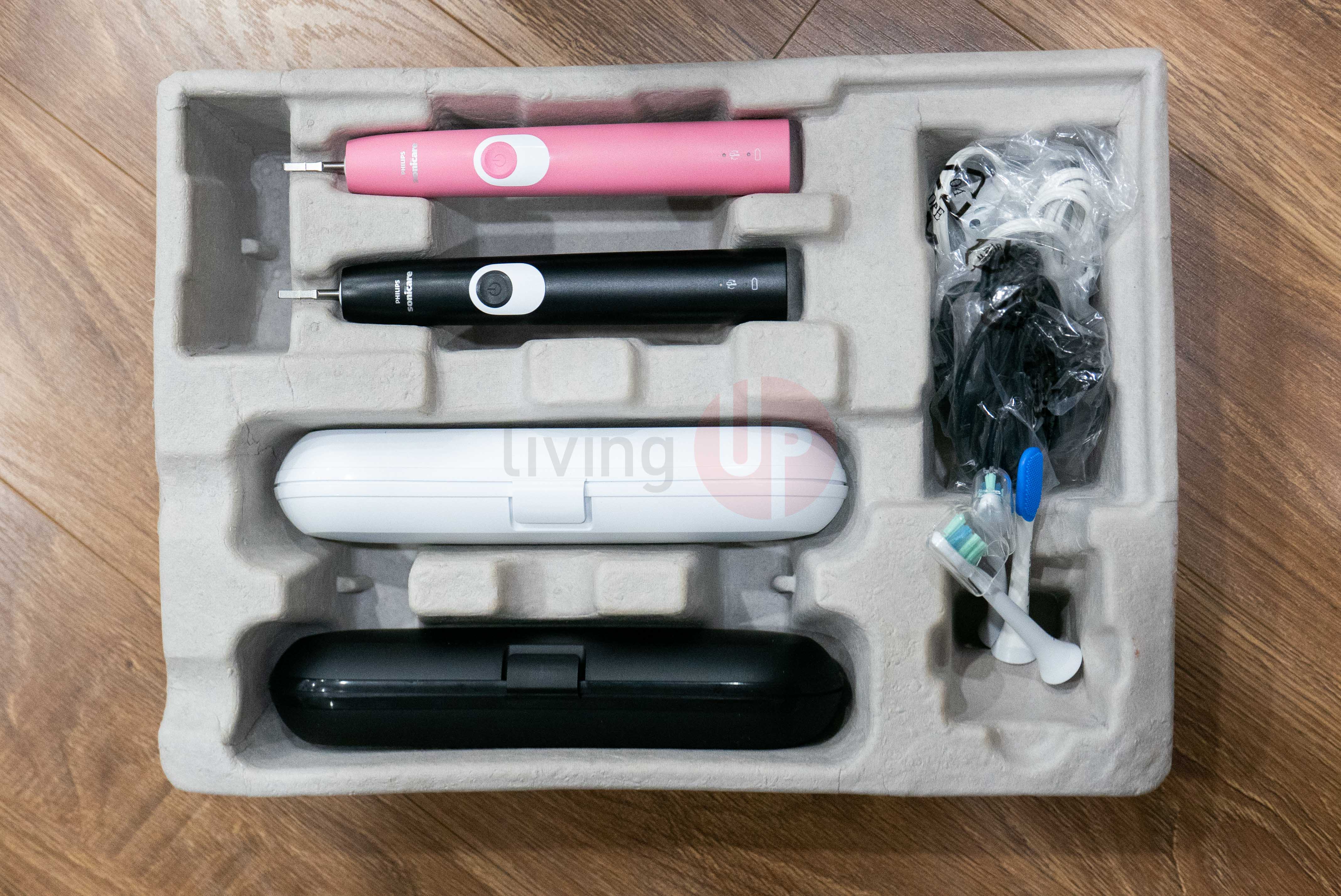 Mở hộp set đôi bàn chải điện Philips Sonicare 4300 (Đen/Hồng)