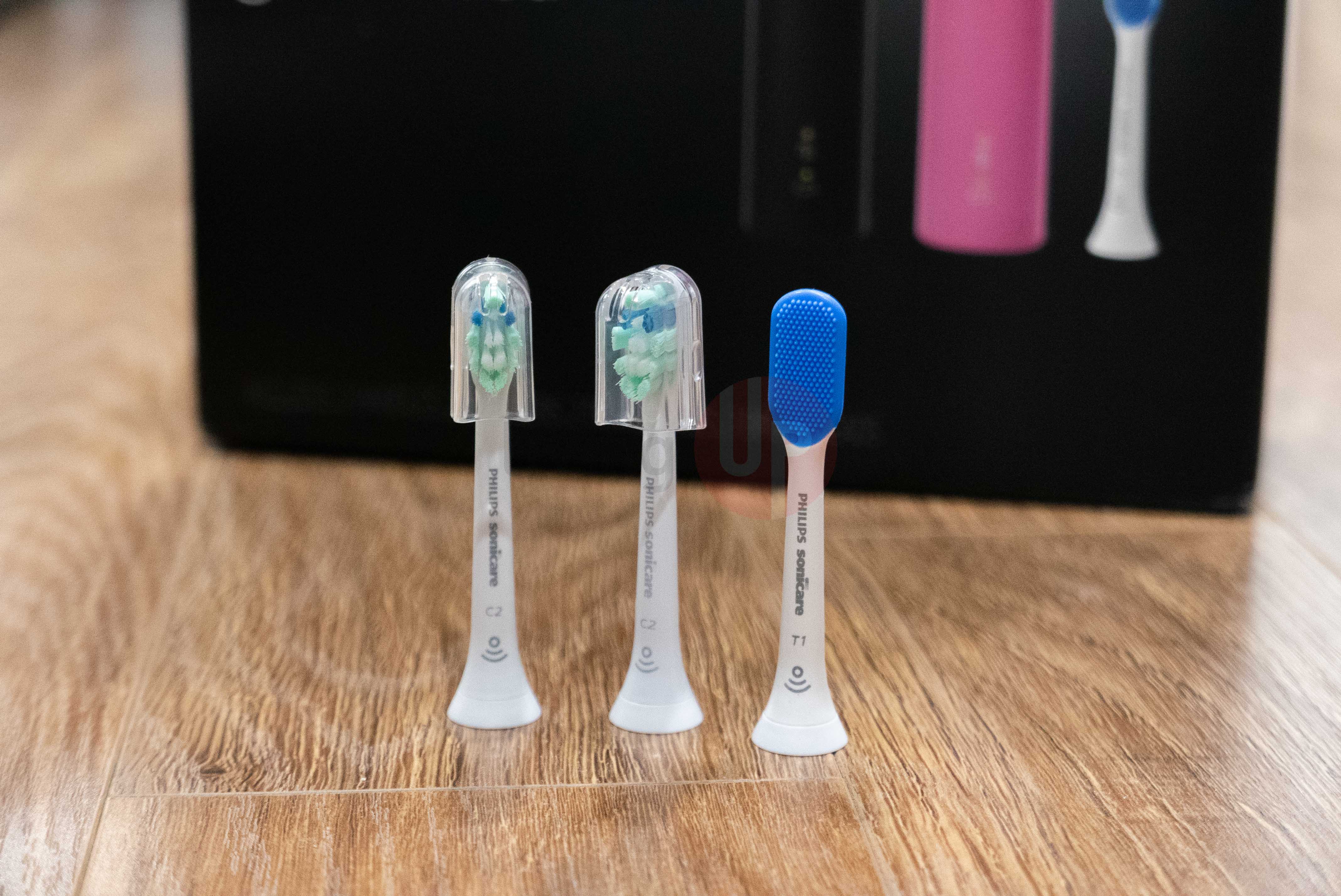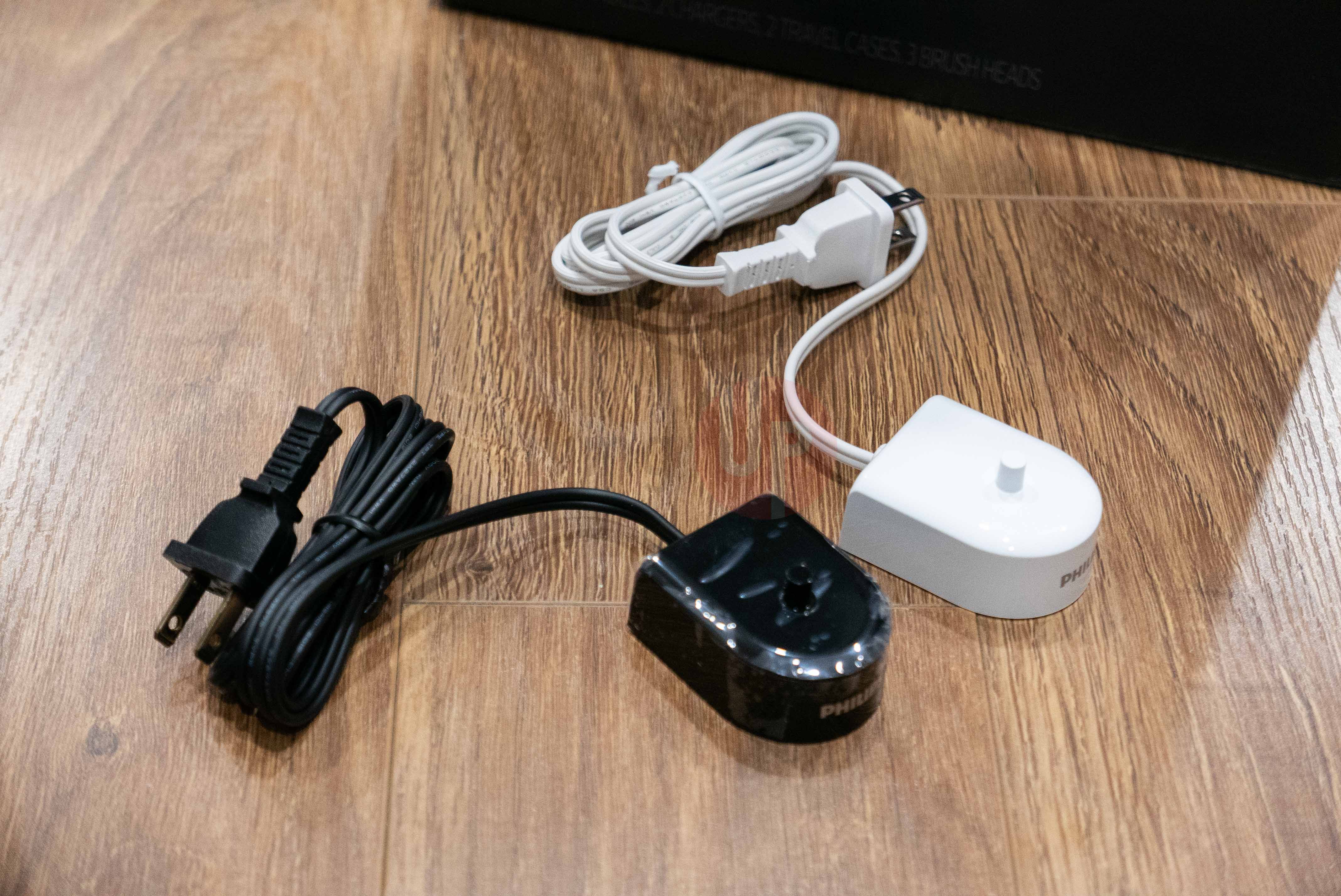 Trong hộp sẽ bảo gồm 2 thân bàn chải 2 màu riêng biệt, 2 hộp dựng du lịch, 2 đầu chải C2 - Optimal Plaque Control, 1 đầu chải lưỡi Philips Sonicare T1, 2 sạc