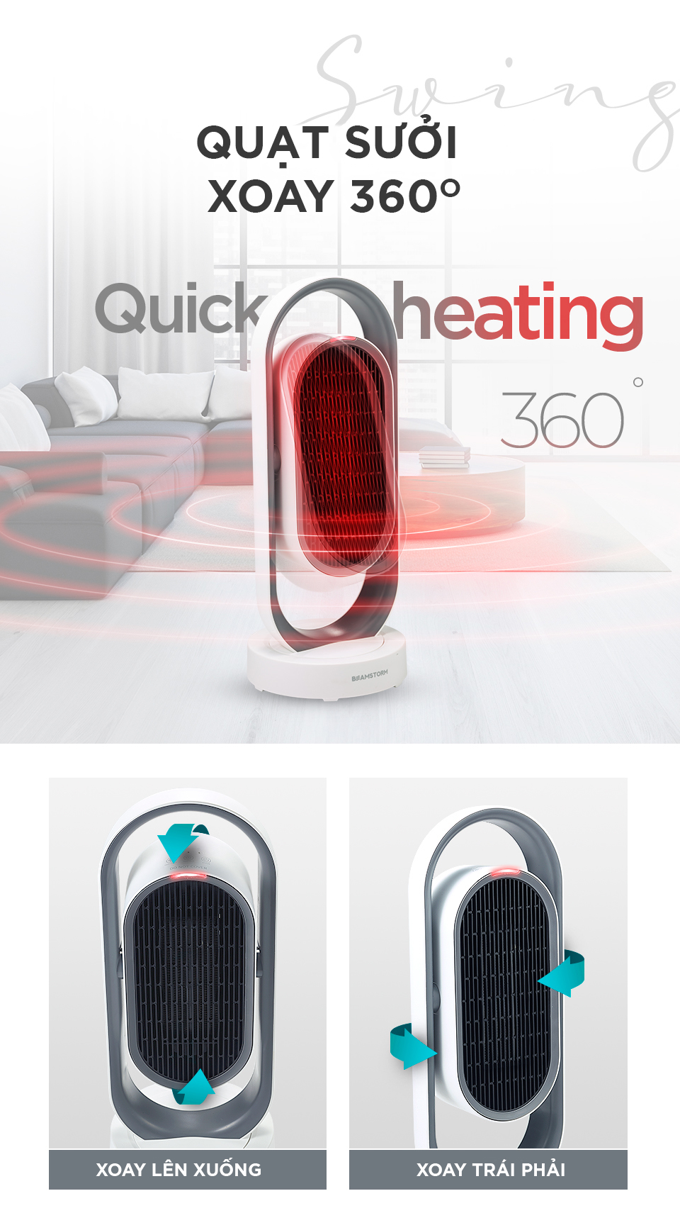 Tính năng xoay 360° giúp làm ấm cả căn phòng của bạn trong tích tắc với công nghệ làm ấm tức thì