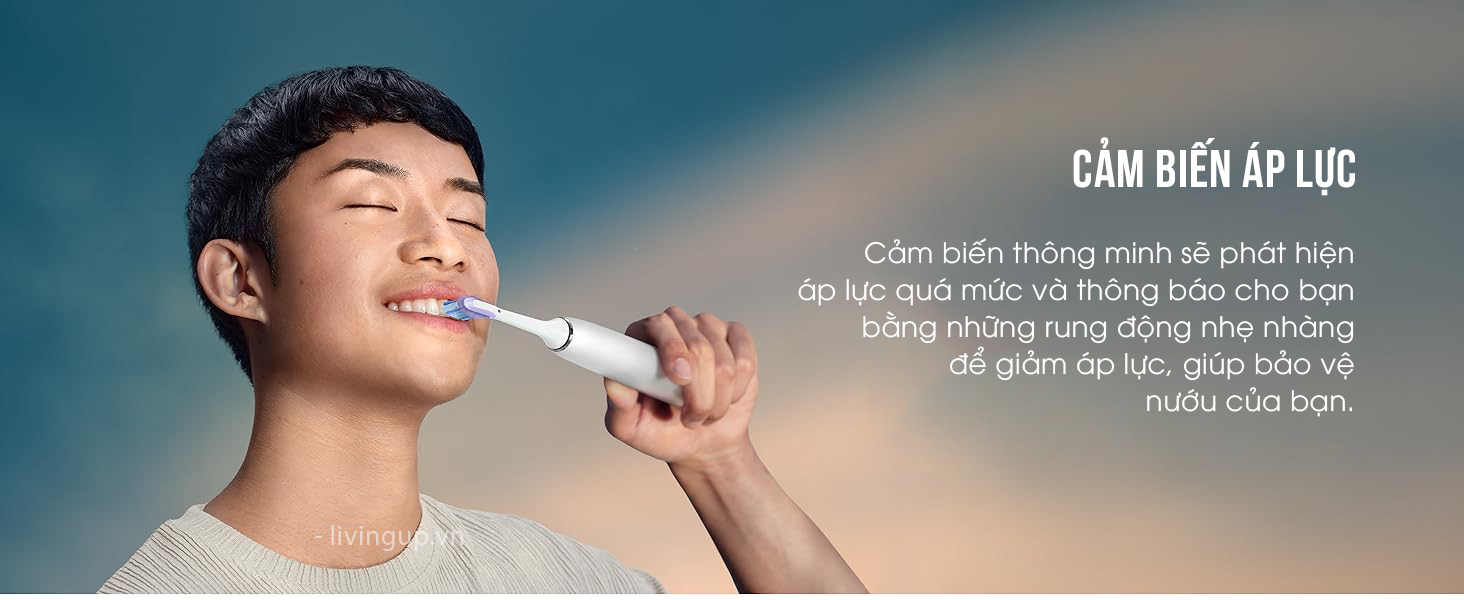 Khi bạn vô tình chải quá mạnh, bàn chải sẽ phát tín hiệu rung cảnh báo nhẹ, giúp bạn điều chỉnh lực kịp thời, từ đó bảo vệ nướu và men răng tốt hơn trong quá trình sử dụng lâu dài.