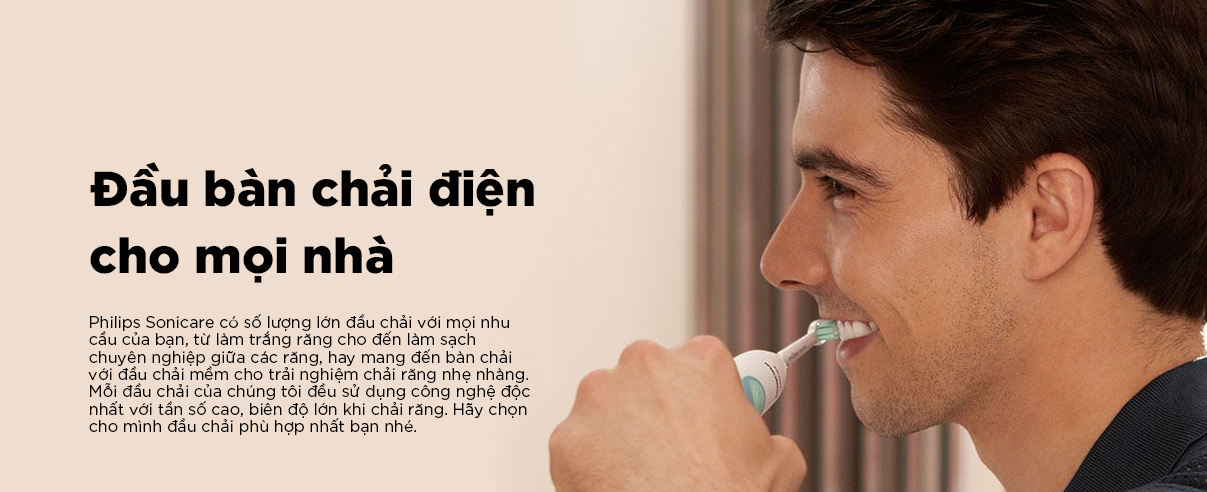 Philips Sonicare có số lượng đầu chải phù hợp với mọi nhu cầu của bạn, từ làm trắng răng cho đến làm sạch sâu, hay mang đến trải nghiệm chải răng nhẹ nhàng êm ái với lông chải siêu mềm. Mỗi đầu chải của chúng tôi đều sử dụng công nghệ động quyền với tần số cao, biên độ lớn khi chải răng. Hãy chọn cho mình đầu chải phù hợp nhất với bạn nhé!