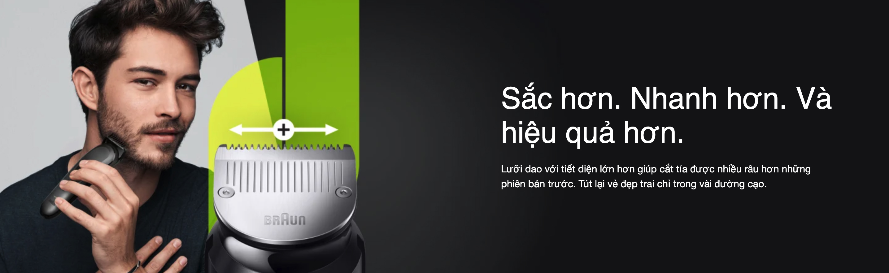 - Đầu dao cạo với tiết diện lớn hơn, sẽ cắt được nhiều râu/lông hơn.