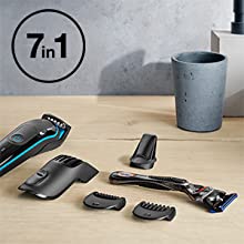 Bộ dụng cụ tạo kiểu tóc có thể sạc tất cả trong một để cắt tỉa râu, toàn thân, mặt và tóc.