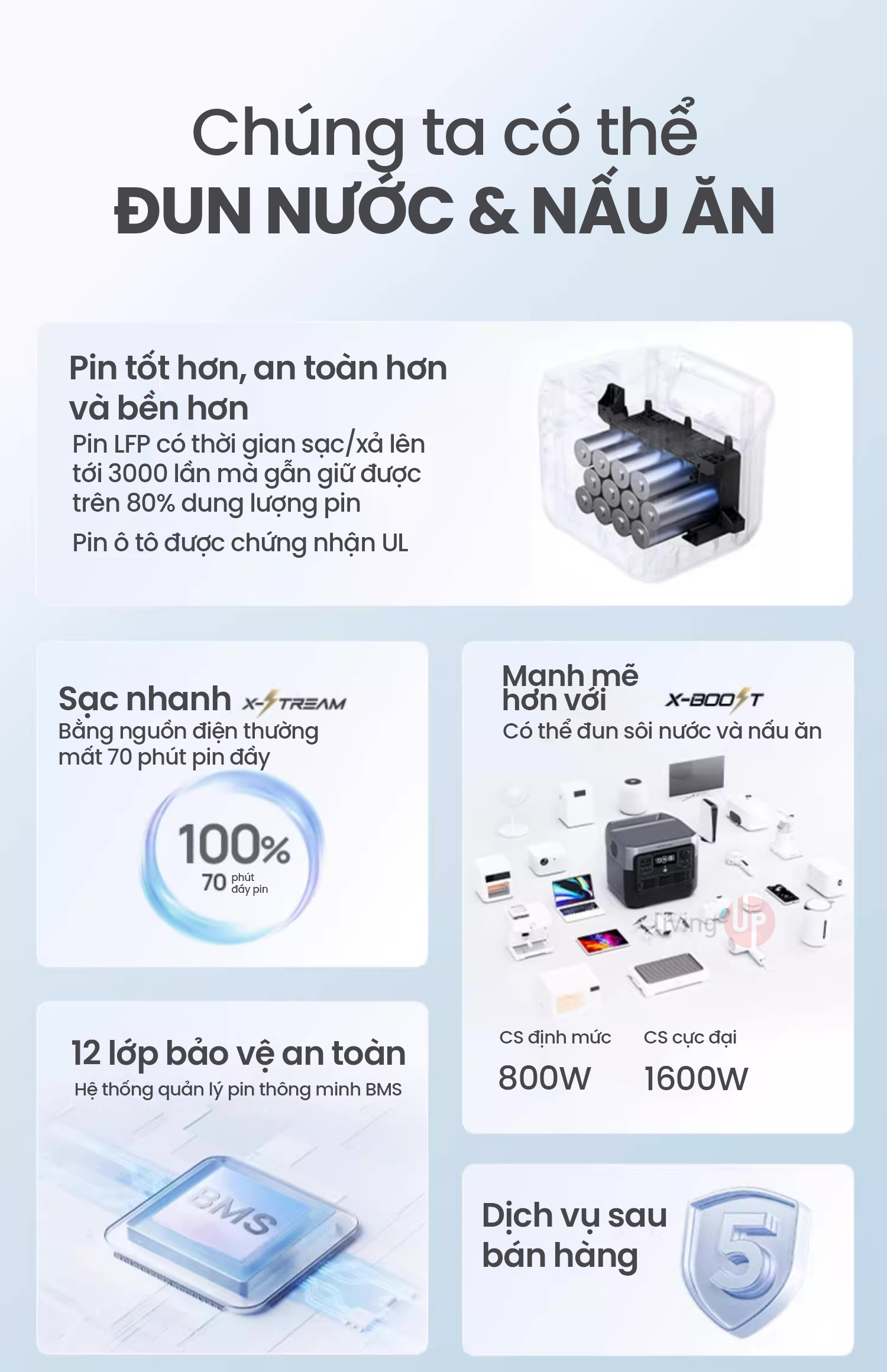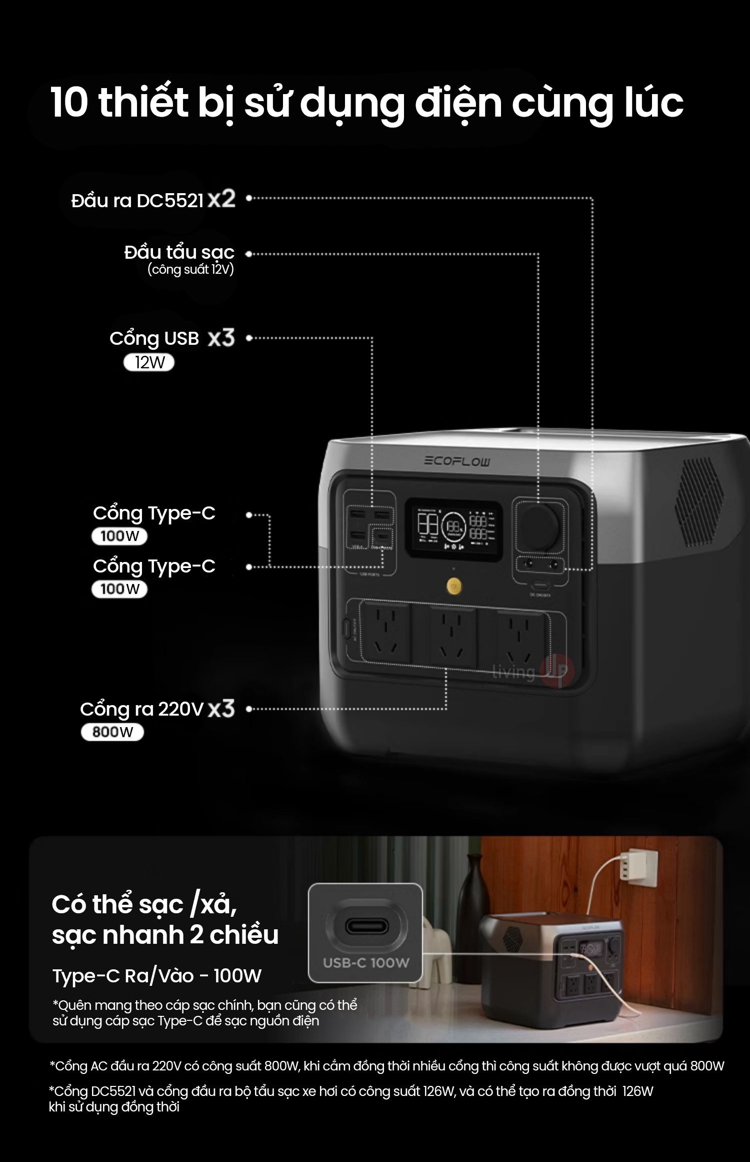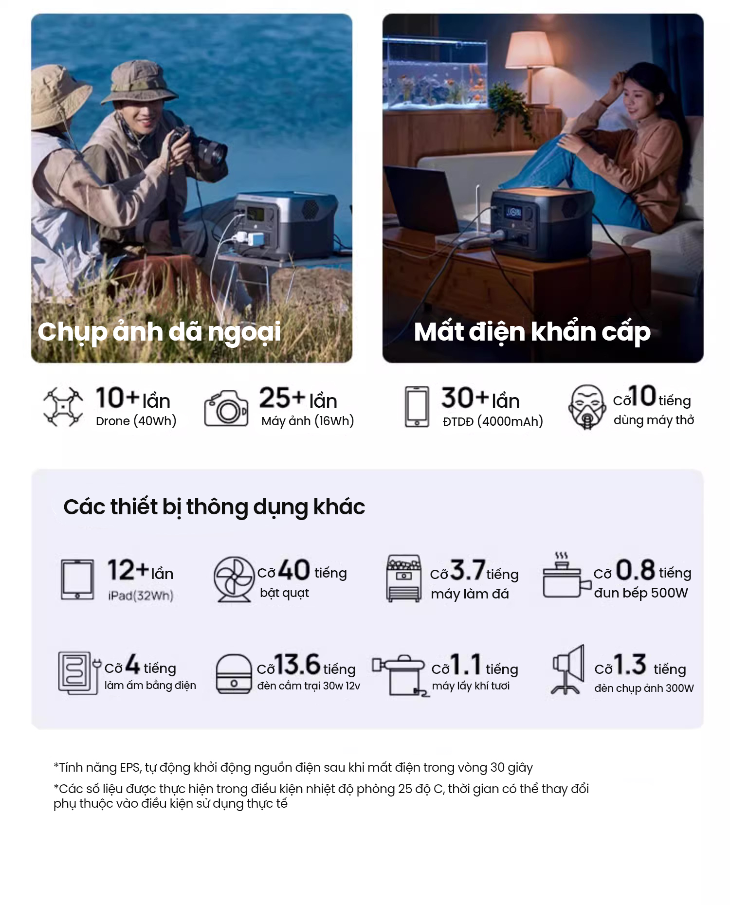 RIVER 2 Pro Với hơn 3000 chu kỳ 100% pin, bạn có thể sử dụng RIVER 2 Pro hầu như mỗi ngày trong gần mười năm. Hóa chất pin LFP không chỉ mang lại tuổi thọ cao. Nó đáng tin cậy, hiệu quả và an toàn hơn ngay cả ở nhiệt độ cao. RIVER 2 Pro có một trong những chế độ bảo hành dài nhất trong ngành.