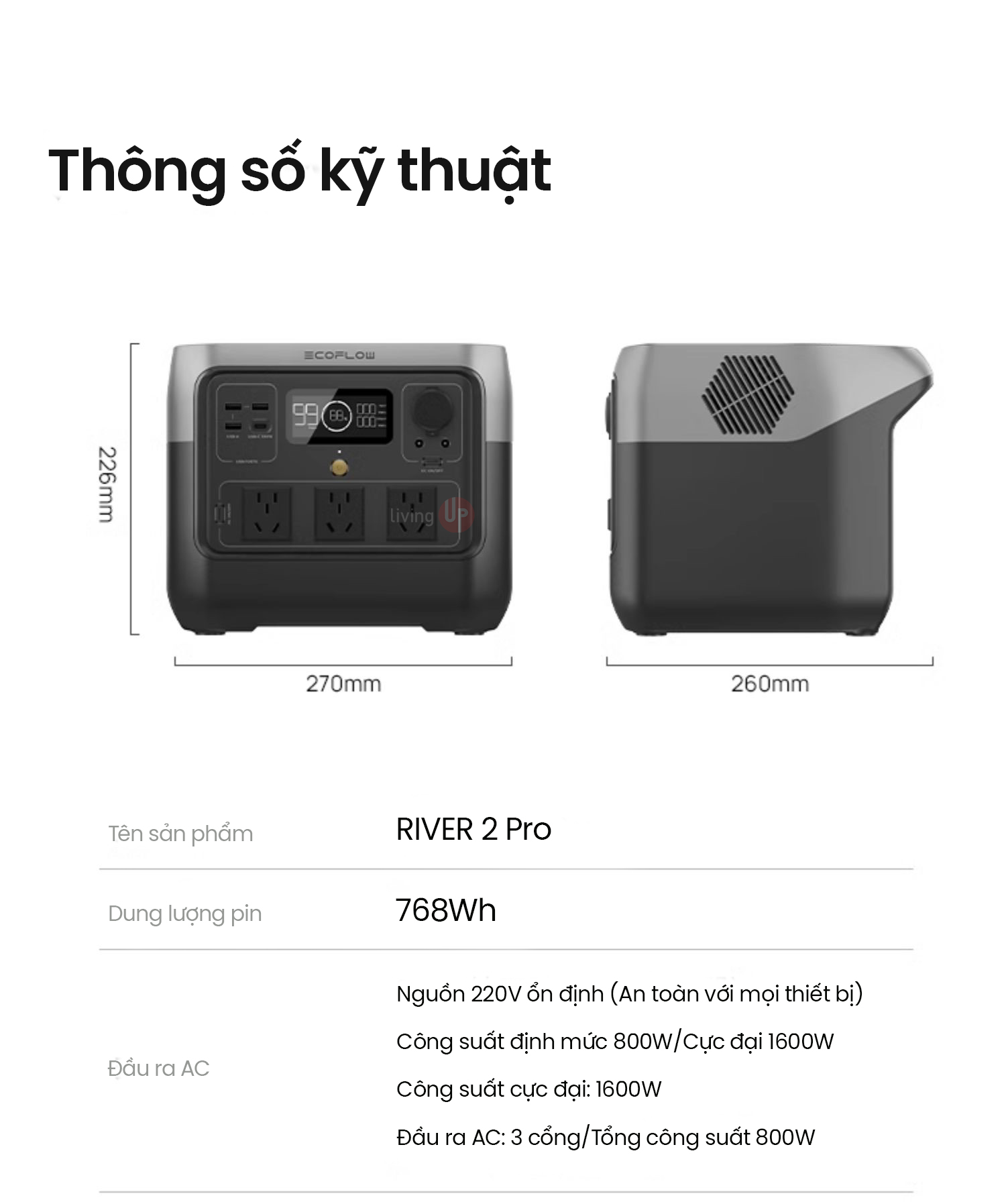 Trạm sạc tích điện di động EcoFlow River 2 Pro 768WH 210.000mah