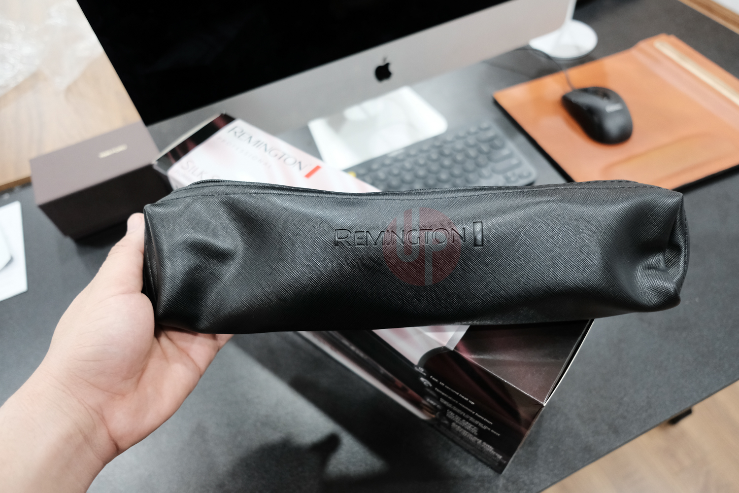 Túi da dập chìm logo Remington ở chính giữa, mặt trong của túi là lớp nỉ giúp cách nhiệt hiệu quả